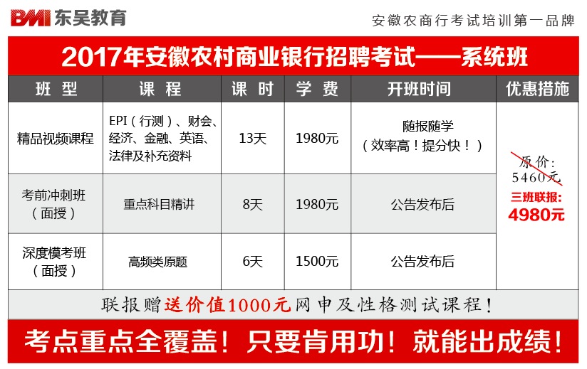 2017年安徽农商行考试综合教材(详情咨询扣扣1926340516) 东吴针对2017安徽农商行考试的班次新鲜出炉,先睹为快 2017安徽农商银行考试——全程三联班